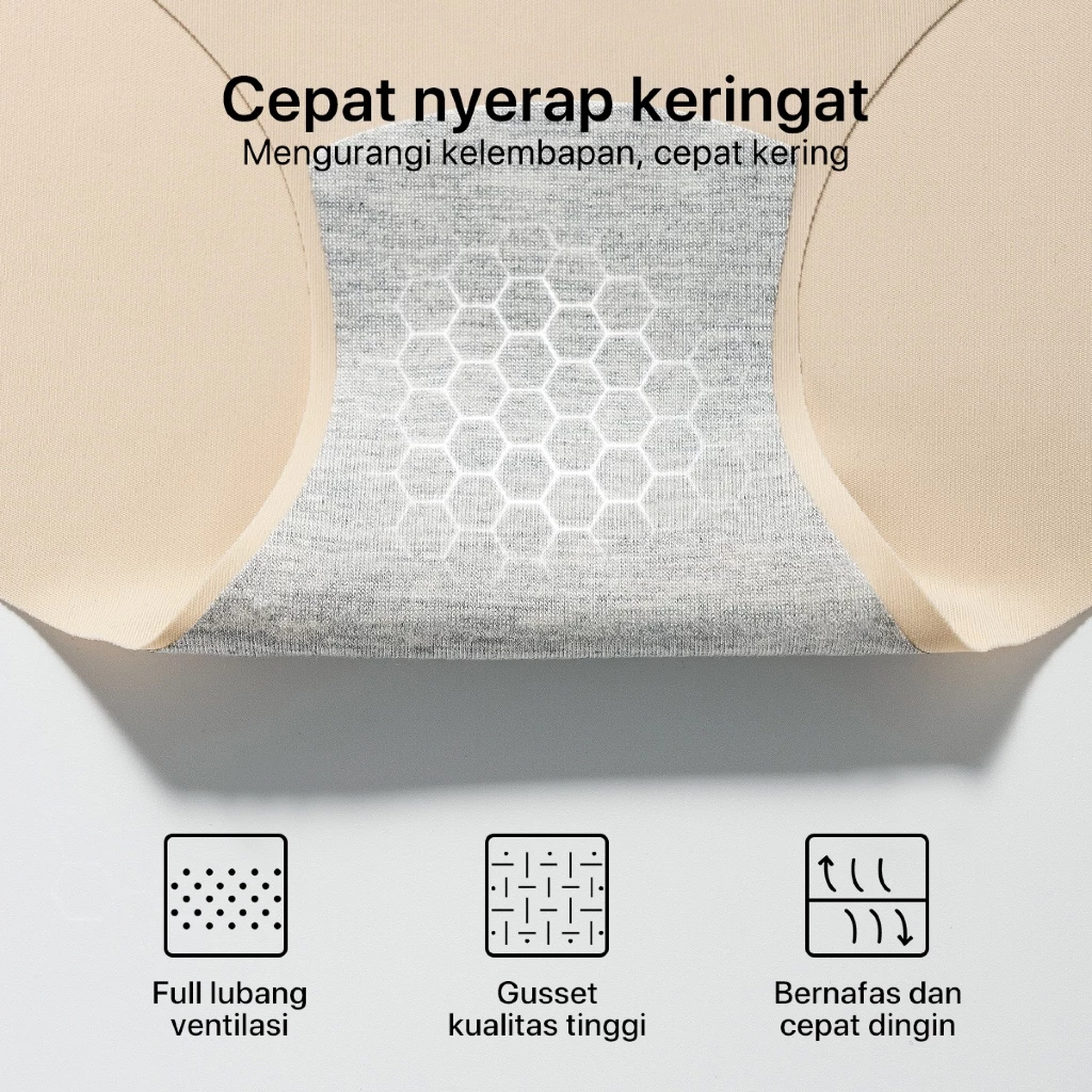 Celana dalam: 75% Nilon + 25% Spandeks, lapisan dalam katun antibakteri